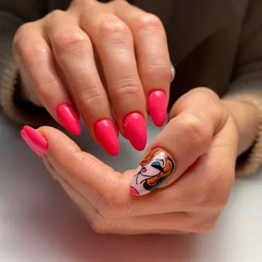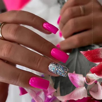 Дизайн ногтей ярко-розового цвета