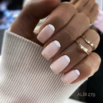 Полумесяц яркого лака на кончике ногтя — свежо и необычно. При этом фон может быть как молочным, так и нежно-розовым. Хорошо смотрится на всей руке, или в сочетании с более сложным рисунком на отдельных пальцах.