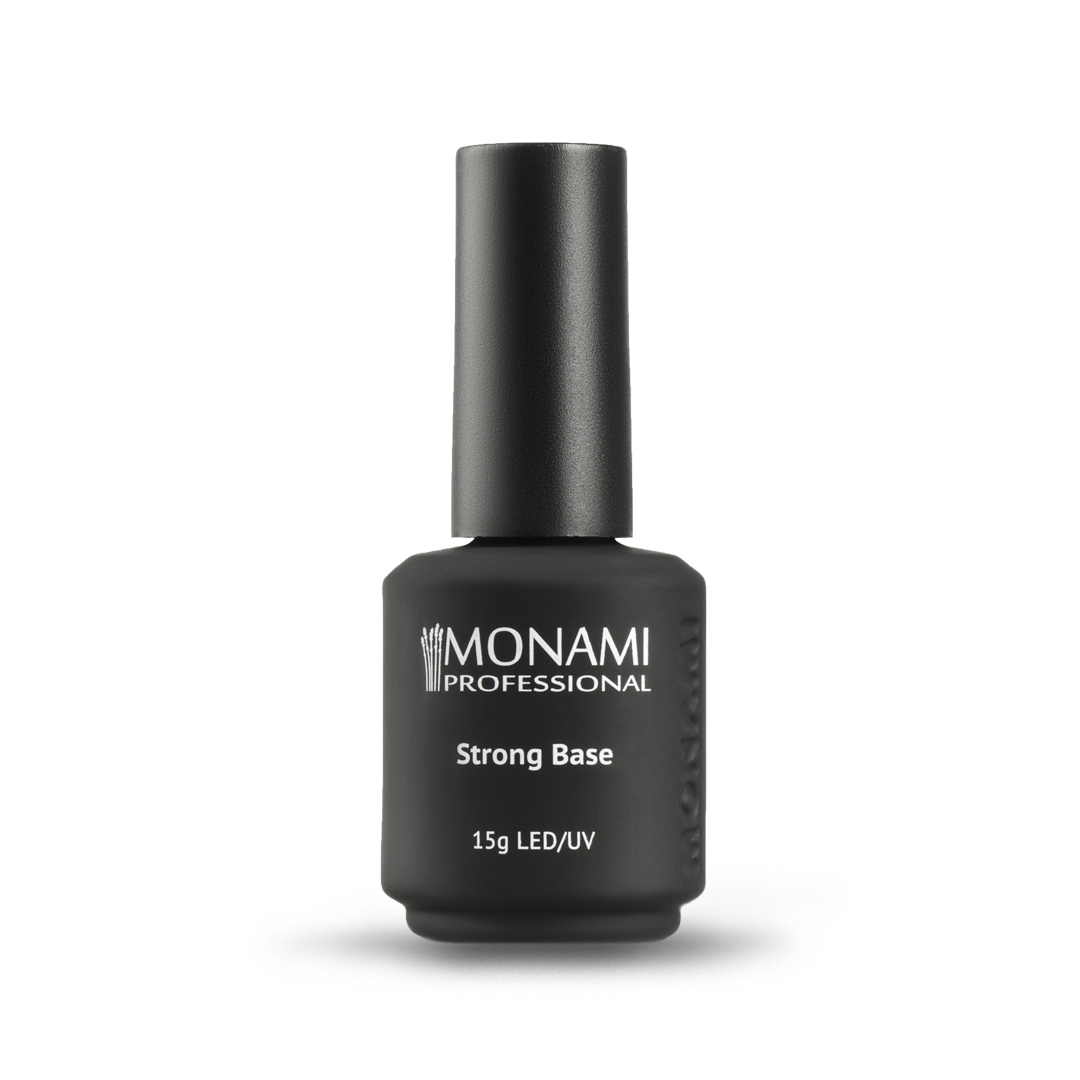 Monami Strong Вase - жесткое базовое покрытие, обладает высокой вязкостью и густой консистенцией. База прозрачная, идеальна для работы с проблемной ногтевой пластиной. Подходит для ремонта, донаращивания, крепления страз, незаменима при создании «идеальных бликов». Создаёт отличный износостойкий фундамент для дальнейшего покрытия.