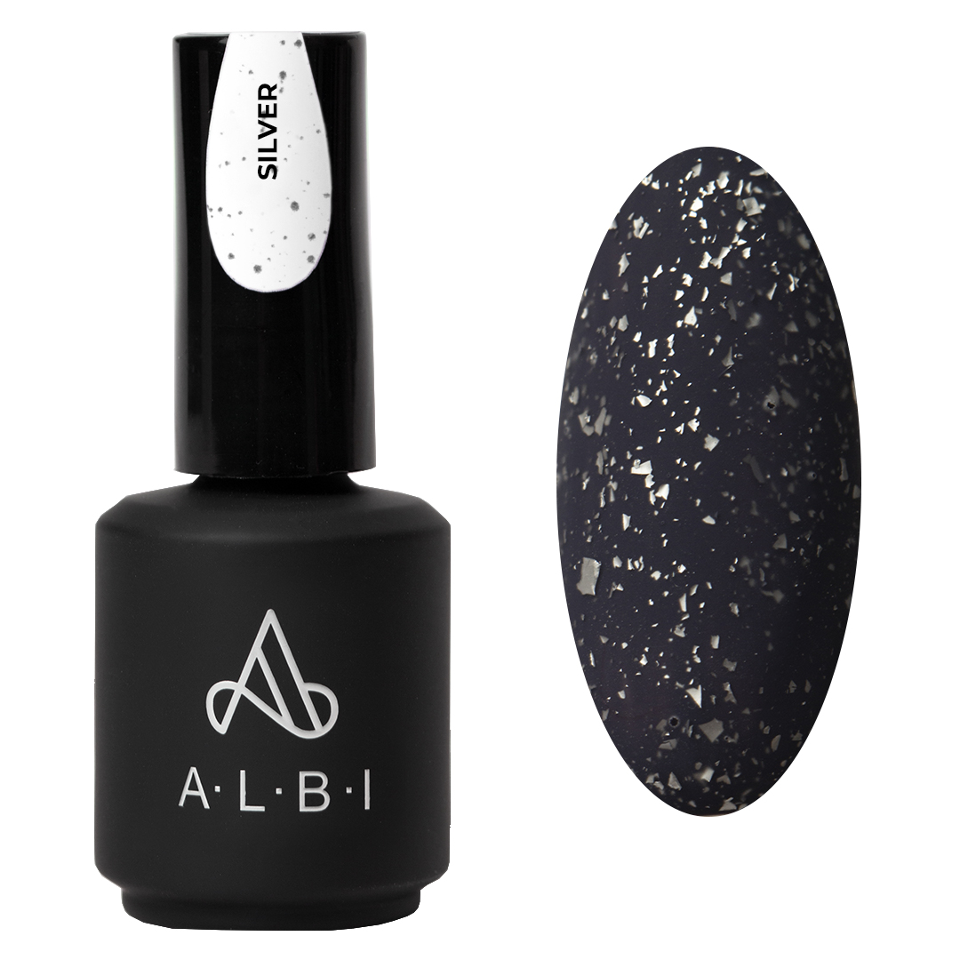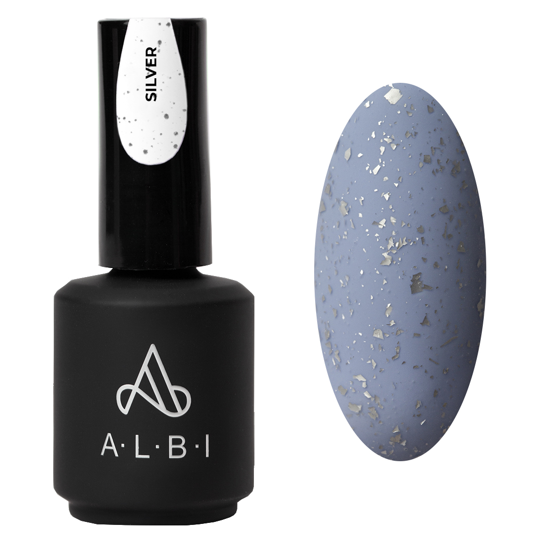 ALBI MATTE POTAL SILVER - матовый топ средней консистенции без липкого слоя с частичками серебряной потали. Представлен в глянцевом и матовом вариантах.