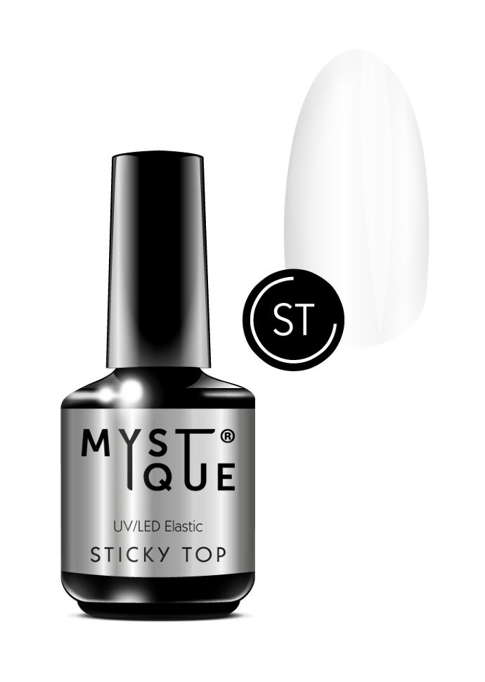 Универсальный финиш идеально сочетается с гель-лаками MYSTIQUE™, а также глиттерами и базами марки.