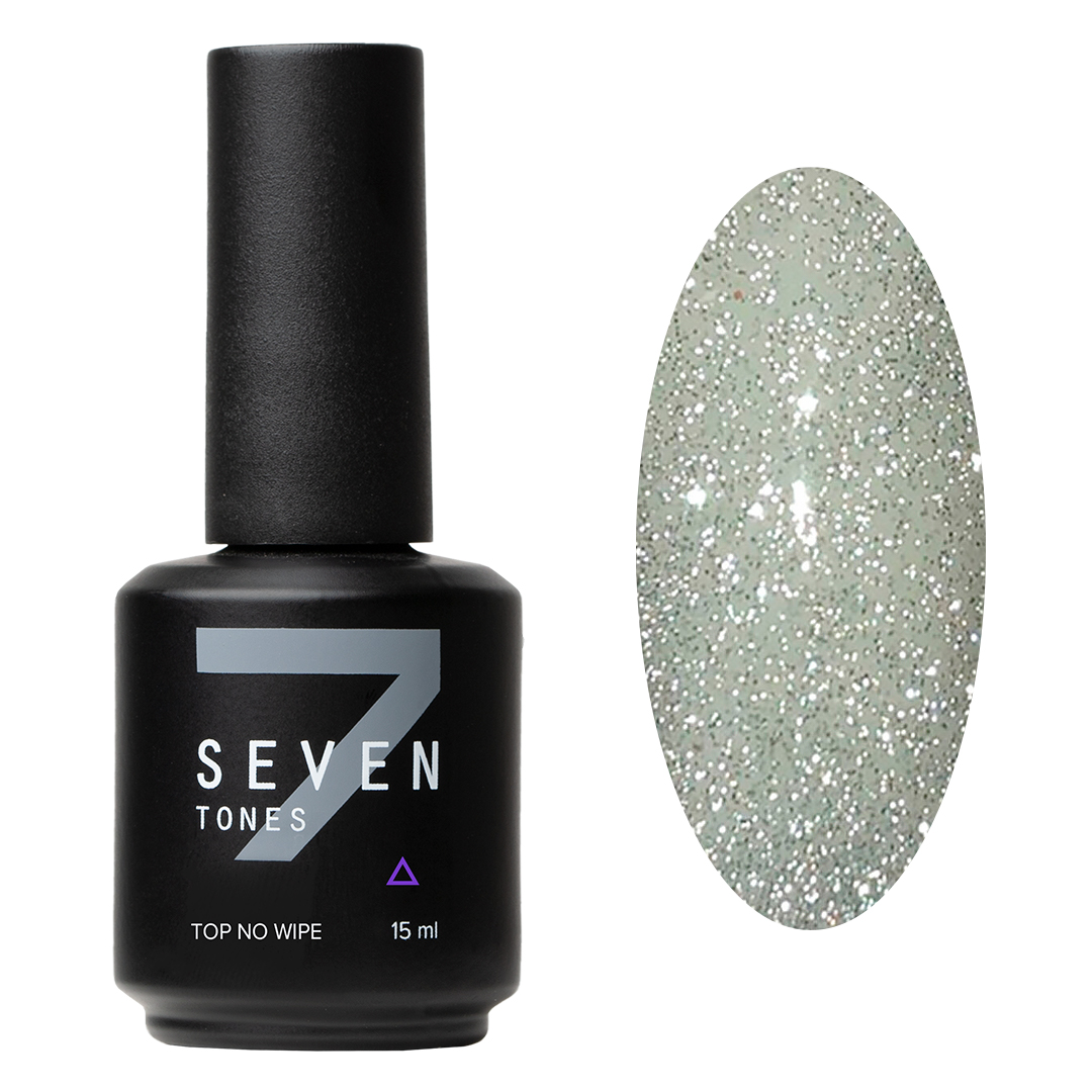 Светоотражающий топ SEVEN Aphrodisiac – это прозрачный глянцевый топ без липкого слоя, со светоотражающими частичками серебристого цвета. Наносится на любой оттенок, на фото товара представлен на молочной камуфлирующей базе.