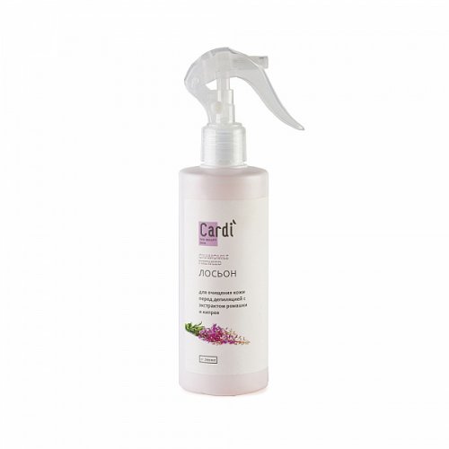 Лосьон предназначен для очищения кожи перед процедурой депиляции, деликатно удаляет любые виды загрязнений, эффективно подготавливает к процедуре. Активные компоненты экстракта кипрея обеспечивают болеутолящий и увлажняющий эффект. Экстракт ромашки успокаивает и уменьшает покраснения. Рекомендован для чувствительной кожи. Использование: Встряхнуть флакон, нанести лосьон тонким слоем на депилируемый участок кожи, равномерно распределить. Через несколько секунд удалить остатки средства нетканной салфеткой.