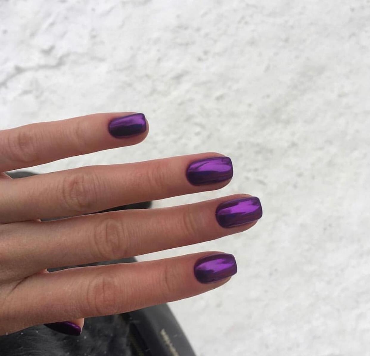 Втираем пигмент в топ без липкого слоя, сразу же после полимеризации(пока топ горячий), т.е. по одному ногтю до скрипа. Втирать можно пальцем, силиконовой кистью или спонжиком