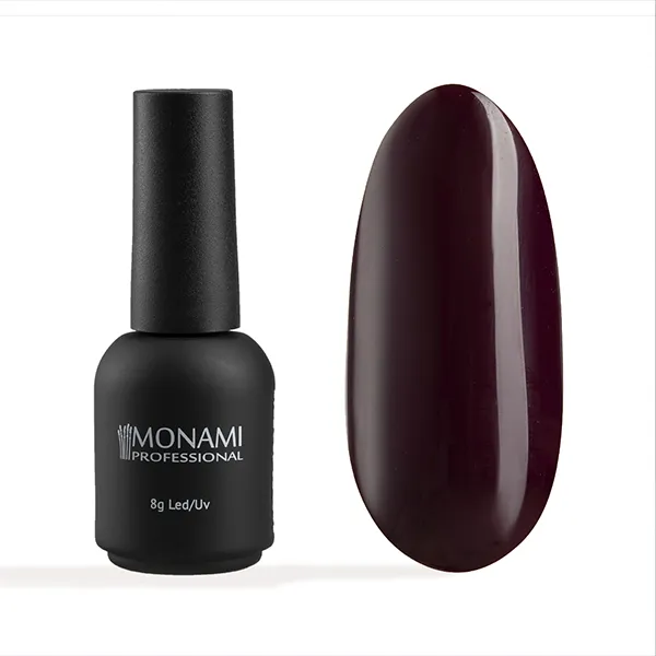Гель-лак Monami бордового оттенка – это непревзойденное качество покрытия и стойкость вашего маникюра. Универсальный и роскошный цвет подойдёт как для строгого повседневного маникюра, так и для торжественного праздничного дизайна.