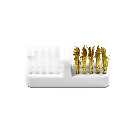 Двусторонняя щетка для очистки фрез от пыли и остатков материала. Одна сторона щетки выполнена из нейлона, более мягкая и очищает деликатно. Вторая – металлический ворс, который легко удаляет загрязнения с фрез. На плоской стороне есть защищенный липкий слой. Вы можете использовать щетку обычным способом или наклеить её на любую поверхность. Подходит для чистки пилок разной абразивности.
