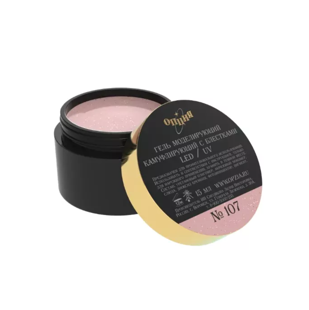 Гель ОПЦИЯ камуфлирующий с блестками №107, 15мл