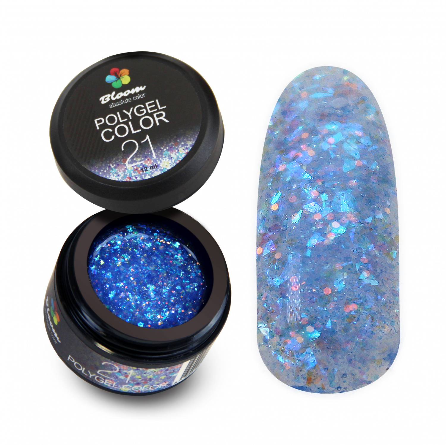 Полигель акригель для ногтей Bloom №21 - полигель мерцающий с крупными голографическими синими и голубыми хлопьями, это универсальный материал для ногтевого сервиса, сочетающий в себе лучшие характеристики акрила и геля. Полигель обладает отличной консистенцией, что делает его удобным в работе как для профессионалов, так и для новичков. Полигель (или акригель) применяется для наращивания, укрепления и ремонта ногтей. Отсутствие резкого запаха делает его более комфортным в использовании по сравнению с традиционными акриловыми системами. Процесс работы с полигелем включает использование специальной жидкости или обезжиривателя без растворителей , что позволяет кисти легко скользить по материалу и без труда распределять его на поверхности ногтя. Полигель Bloom подходит как для наращивания на верхние формы, так и на бумажные шаблоны, что делает его универсальным выбором для создания различных форм и длины ногтей. Одной из главных особенностей полигеля является его прочность и консистенция пластилина - вы можете придать ногтям любую форму. Быстро сохнет, не печет в лампе, легко опиливается и снимается фрезой. Это позволяет ему сохранять форму без растекания, при этом эффективно укрепляя тонкие и ломкие ногти. В линейке полигелей от Блум вы легко подберете нужный цвет для создания натуральных или ярких ногтей. Объем баночки - 12 грамм. Наносить на подложку из прозрачной базы. Можно поджимать, хорошо держит арку, не желтее даже при долгой просушке.