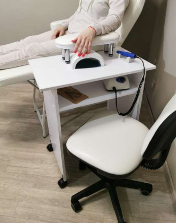 Маникюрный стол ПОДКАТНОЙ для работы в 4 руки с полкой