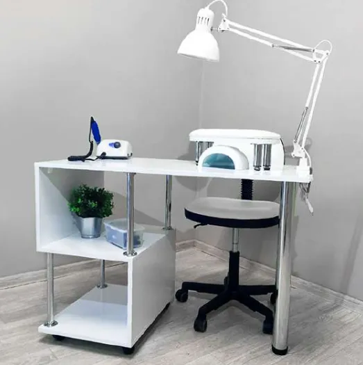 Маникюрный стол S-ка с полочками на трубках