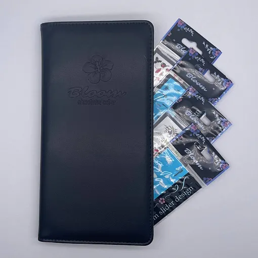 Bloom, Альбом для слайдеров — компактный альбом для сортировки слайдер-дизайнов Блум. Позволяет упорядочить переводные слайдеры по тематике, оттенкам и упрощает выбор и поиск необходимого быстрого нейл-арта. Имеет 2 прозрачные ячейки 1-й на странице.