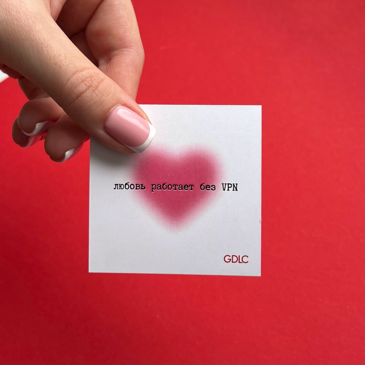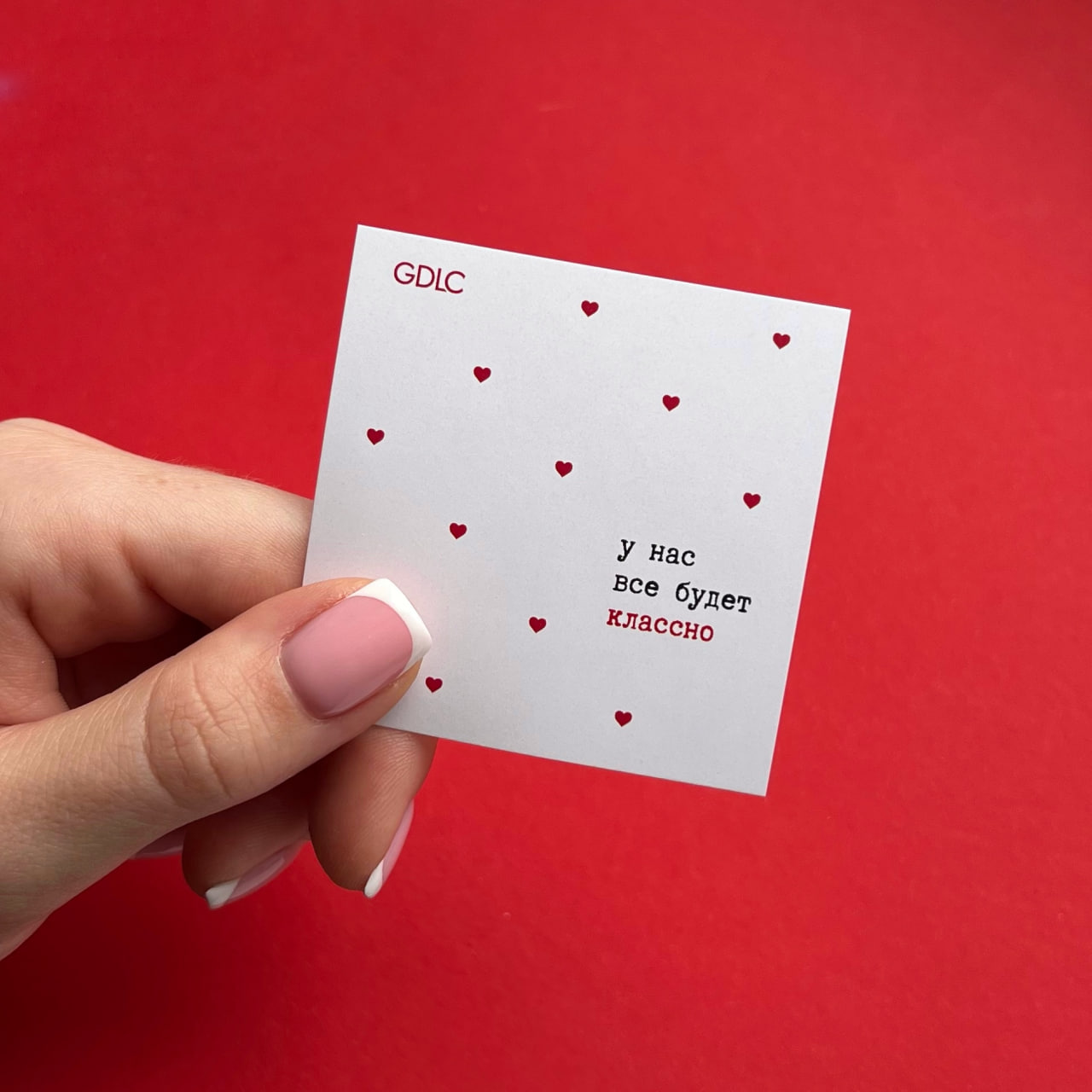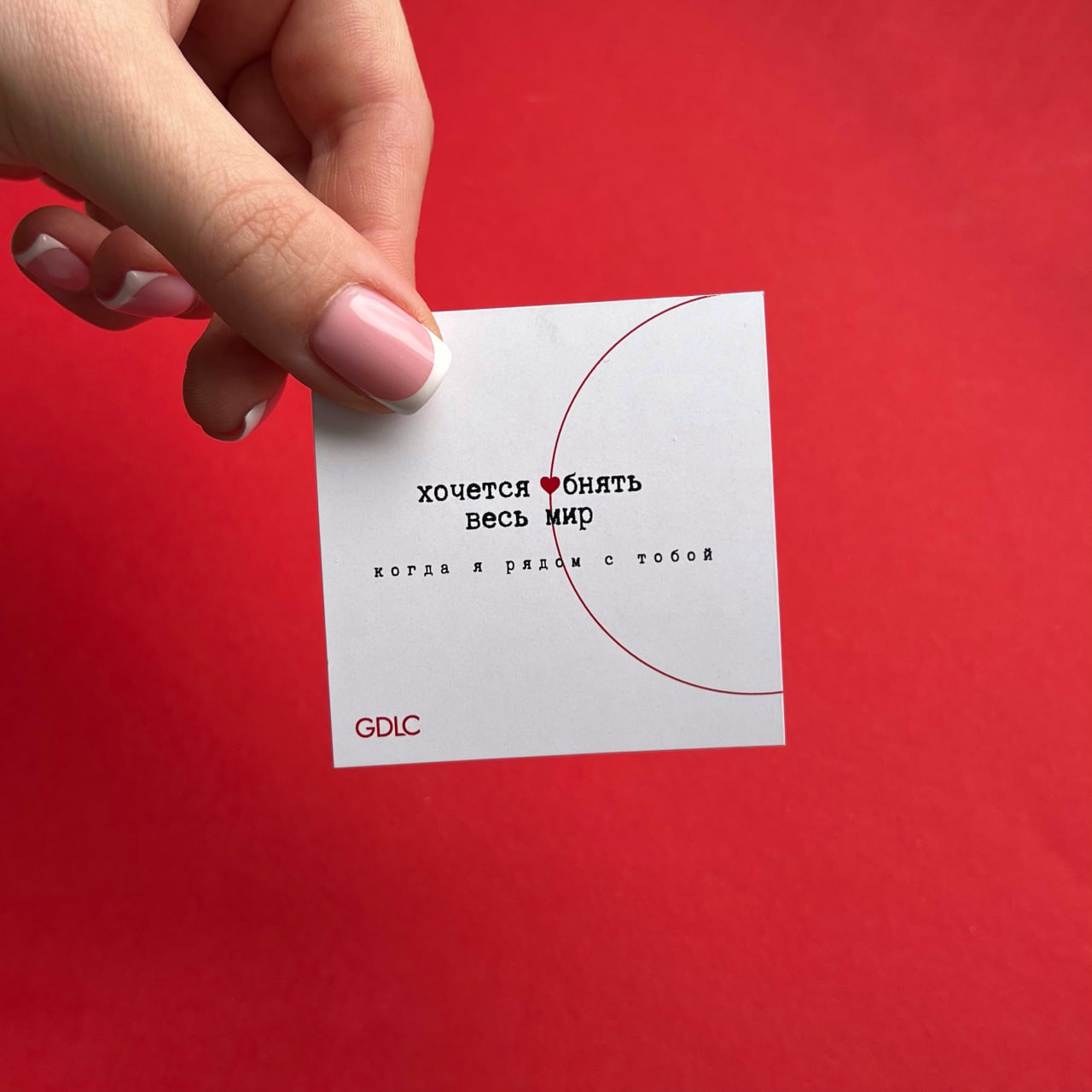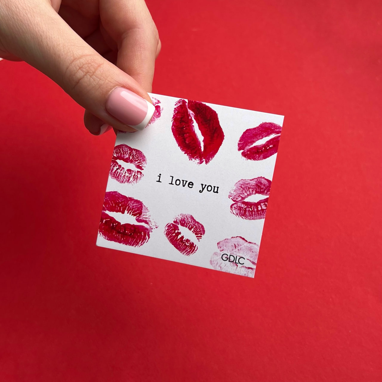 Красивый дизайн: открытка оформлена в стиле, который ассоциируется с праздником любви.