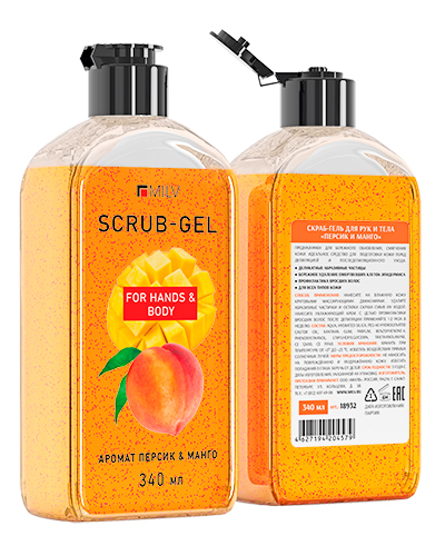 Скраб-гель MILV для рук и тела ПЕРСИК и МАНГО, 340 мл