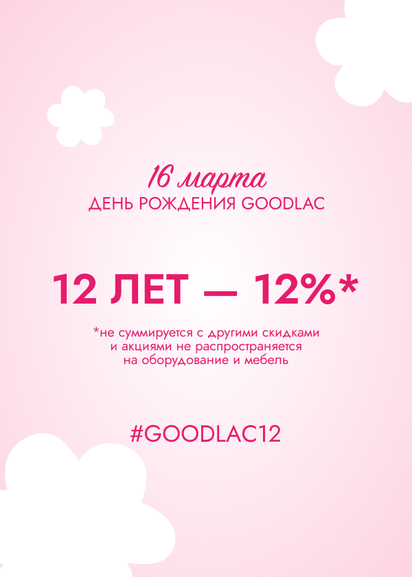Акция не суммируется с другими акциями и не действует на оборудование и мебель, для того, чтобы акция сработала в корзине не должно быть других товаров из других акций, можно создать несколько заказов и уточнить после звонка менеджера о том, что у Вас несколько заказов. Благодарим за понимание,с любовью команда GOODLAC!